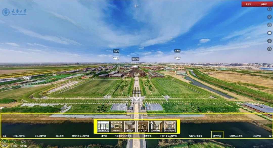 打开全景天大“新校区”页面后,点击左下角“全景列表”,找到“数学学院”即可一键直达啦!