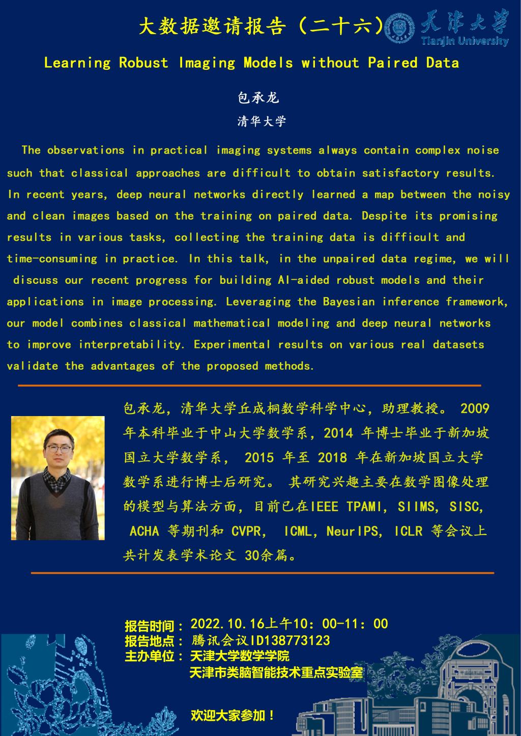 The observations in practical imaging systems always contain complex noise such that classical approaches are difficult to obtain satisfactory results. In recent years, deep neural networks directly learned a map between the noisy and clean images based on the training on paired data. Despite its promising results in various tasks, collecting the training data is difficult and time-consuming in practice. In this talk, in the unpaired data regime, we will discuss our recent progress for building AI-aided robust models and their applications in image processing. Leveraging the Bayesian inference framework, our model combines classical mathematical modeling and deep neural networks to improve interpretability. Experimental results on various real datasets validate the advantages of the proposed methods.