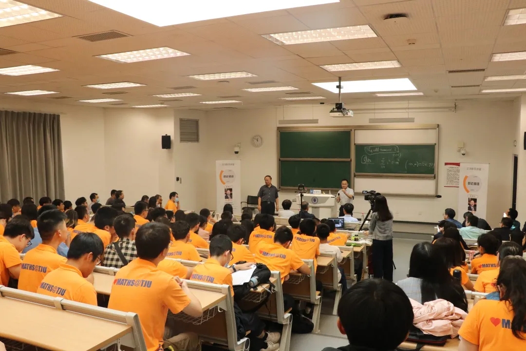 随后,张继平给同学写下群论重要猜想Thompson's conjecture,播种下数学人求索的种子。在交流互动环节,张继平分享了对于魔群的看法,表达了学习抽象代数的建议。他强调,现在的数学发展来越综合,代数、分析、几何虽各有特点,但不能对某一门情有独钟,在大学阶段应视数学为一个整体。求方程的根就是代数问题,解一堆方程的根就是几何问题,用多项式逼近任意的函数就是分析问题。他用少林寺僧人习武比喻大学初期数学基本功的锻炼。改变观念,从零开始,哪怕“手无寸铁”,也要劳其筋骨,从一条定理修炼,掌握真本事。“天才”并非天生,必定经过汗水的浇灌,刻意无意的训练,才碰撞出精彩的灵感。