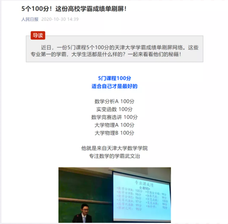 被人民日报和中国青年报等多家主流媒体报道的满分学霸