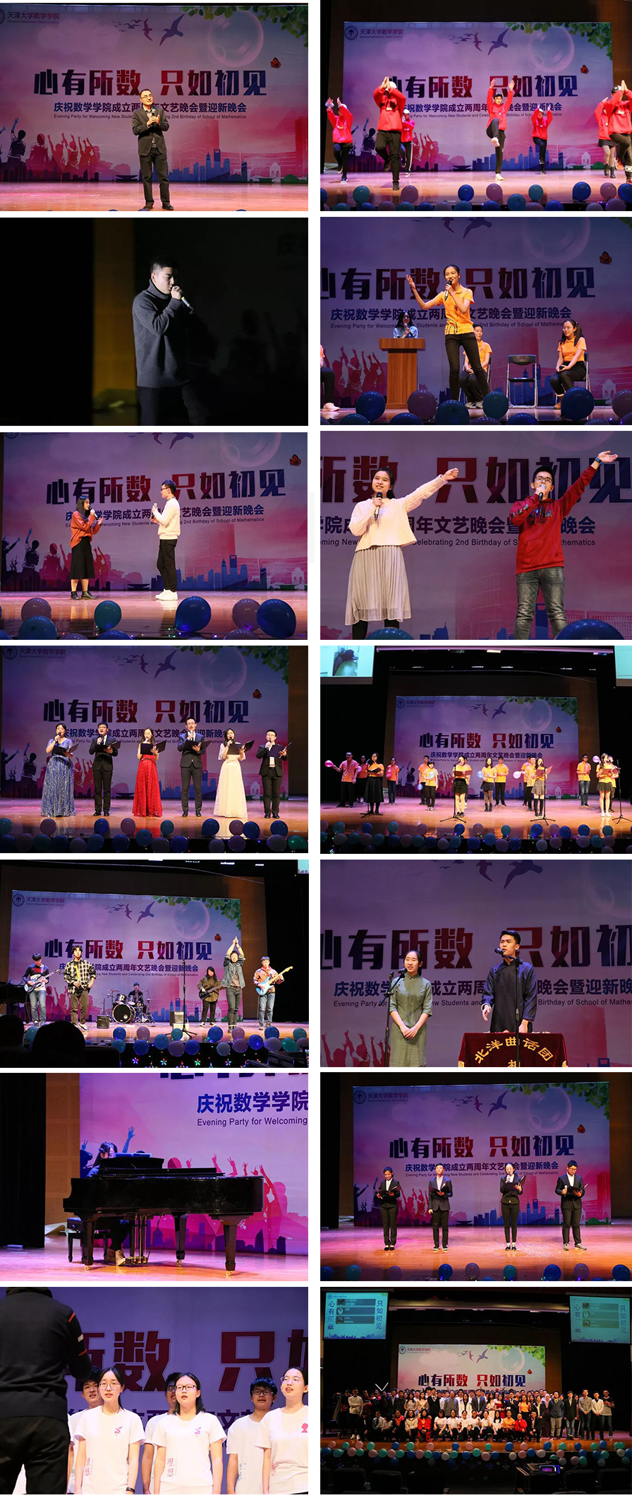 2019年1月4日,庆祝天津大学数学学院成立两周年文艺晚会暨迎新晚会在北洋园校区大通学生活动中心隆重举行。数学学院党委书记赵欣、副院长史国良、党委副书记韩旭与学院师生共聚一堂,庆祝学院两周年生日。