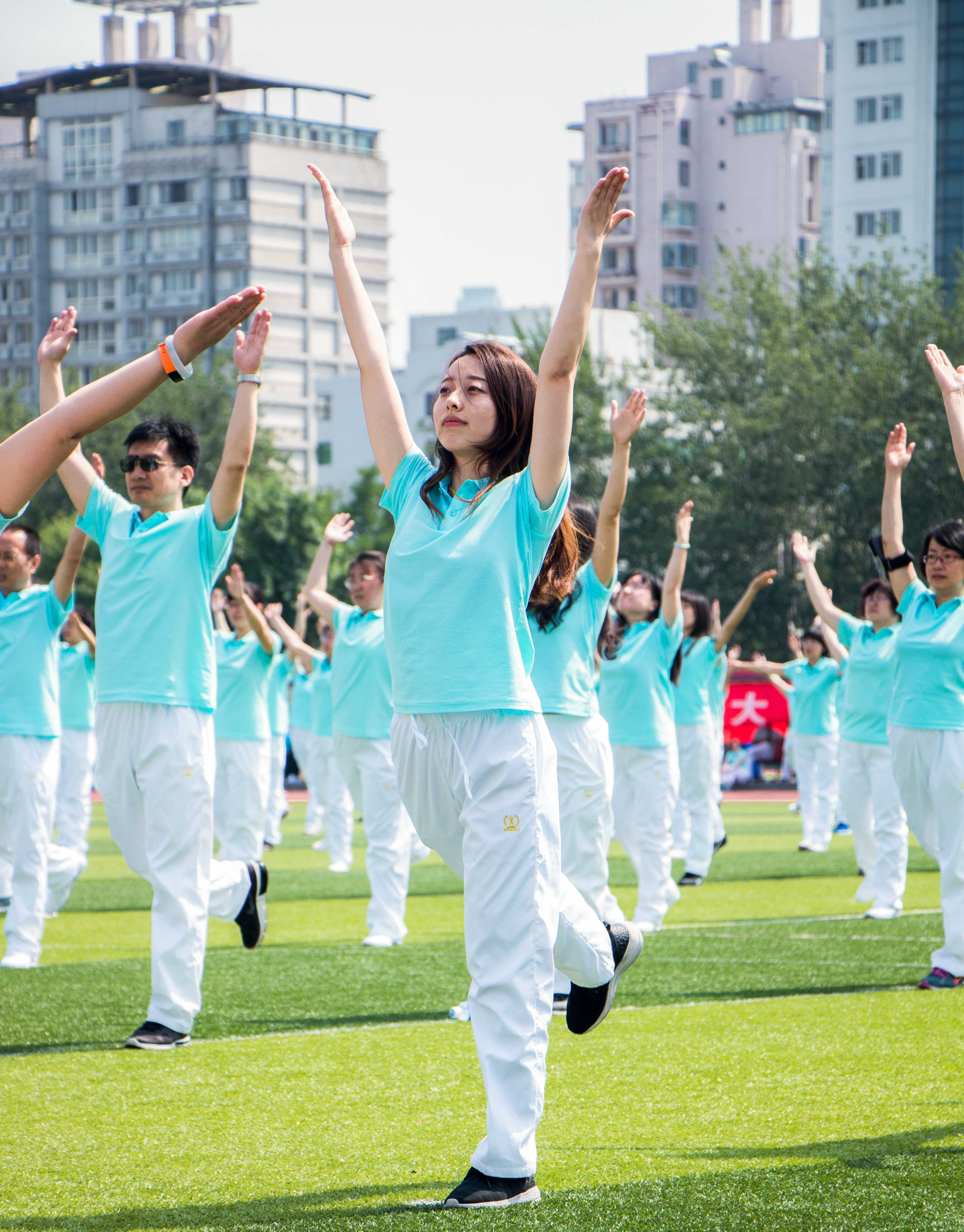 接下来,是我院代表参加全校教职工广播体操表演。老师们精神饱满,动作规范,整齐划一,体现了数学学院全体教职工健康向上的精神面貌。