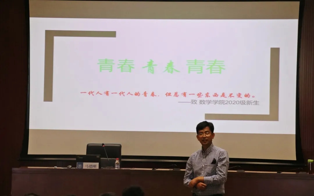 2020年9月16日下午,在北洋园校区1895A102报告厅,数学学院党委书记马德刚为2020级本科生、研究生作专题报告,以“青春”为主题畅谈青年人的努力方向。