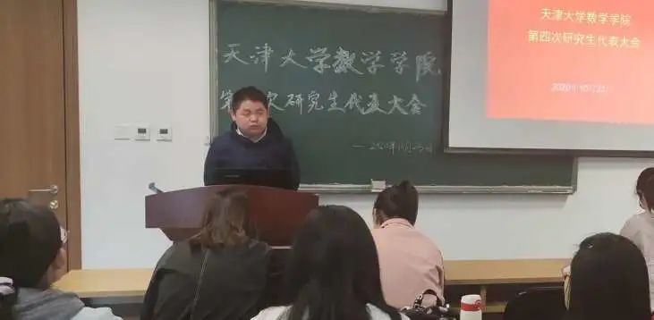 2020年10月23日下午3时,天津大学数学学院第四次研究生代表大会于北洋园校区32教学楼B518教室召开。本次大会由学院学工办主任唐婧亚主持,11名研究生代表以及研究生会2名主席团候选人出席会议。