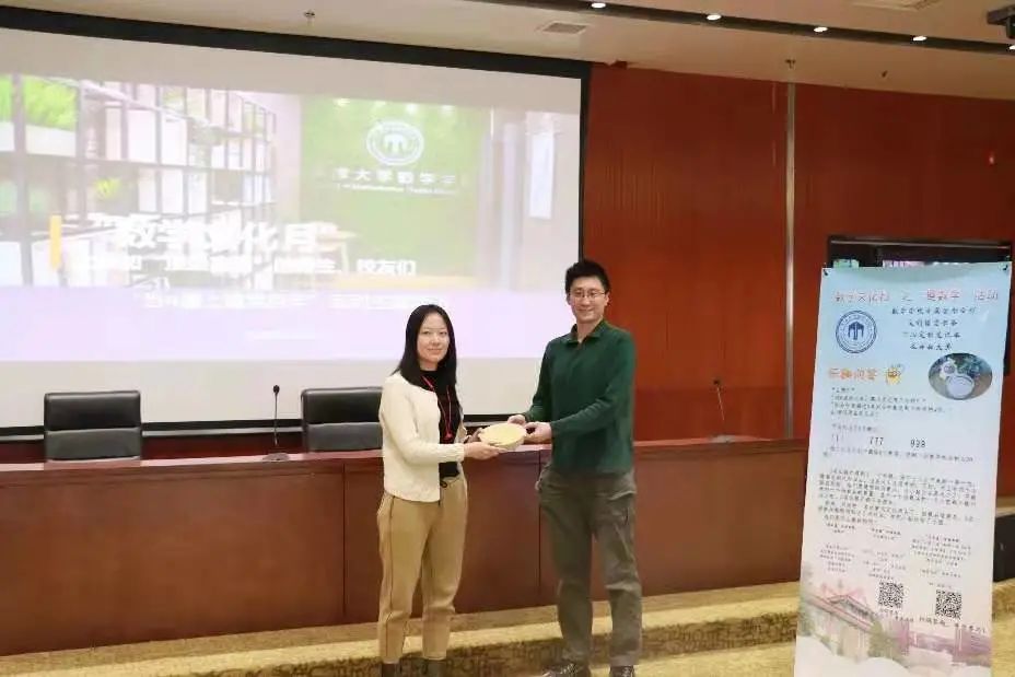 为感谢校友对师弟师妹们的指导,许晶为张况颁发天津大学数学学院“英华导师”聘书。老师、校友共同为“数学文化月”之“趣数学”活动获得一、二、三等奖的学生代表颁奖,鼓励大家志存高远,为学好数学砥砺前行。