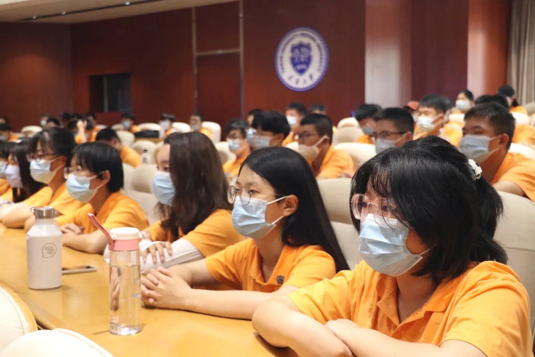 2021级求是数学班班主任余讯代表教师发言。他以自身学习研究的感受告诉同学们,数学是很有魅力和活力的学科,有很多重要且有趣的数学问题有待解决。他提醒同学们要在比以往更加刻苦的学习,才能打好基础,将来才能在数学的广阔天地里有所作为。学好数学,没有捷径,唯有脚踏实地、刻苦钻研。