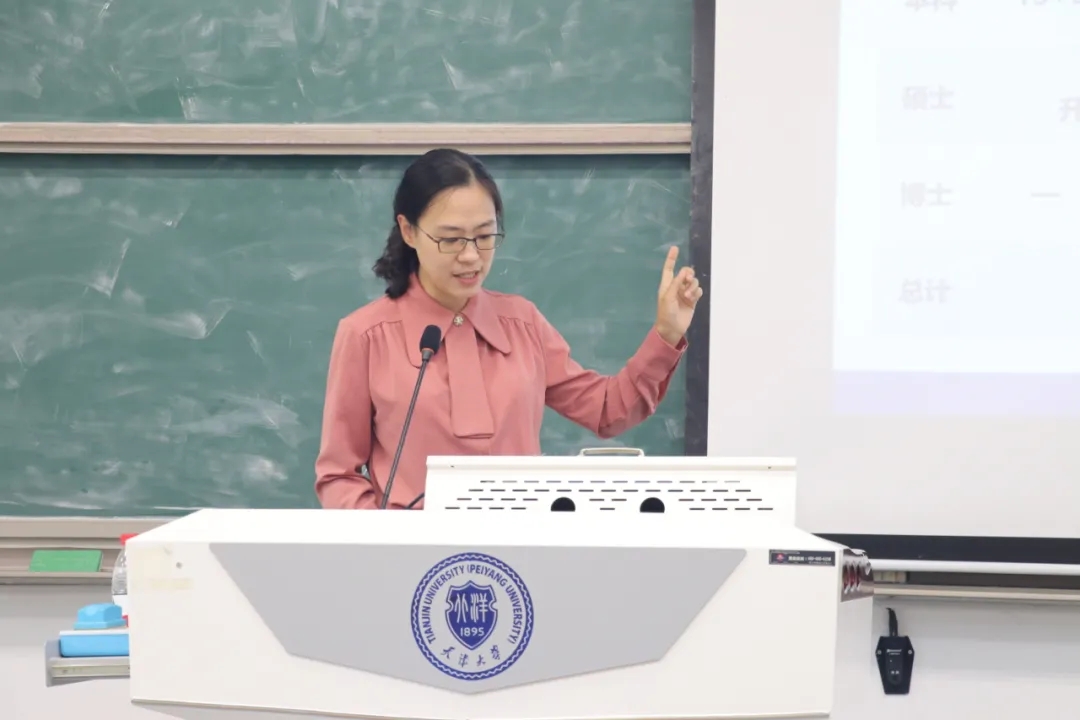 唐婧亚通过一组组数据向同学们展示天大数学人的职业选择。她指出数学学院的同学们在择业过程中要关注国家需求,既要志存高远,也要脚踏实地。在毕业生就业工作进度方面,她就重要时间节点、派遣手续介绍等方面进行解读。她鼓励毕业生积极与导师、辅导员、校友多方面进行沟通,尽可能掌握更多就业信息,在职场中赢得先机。