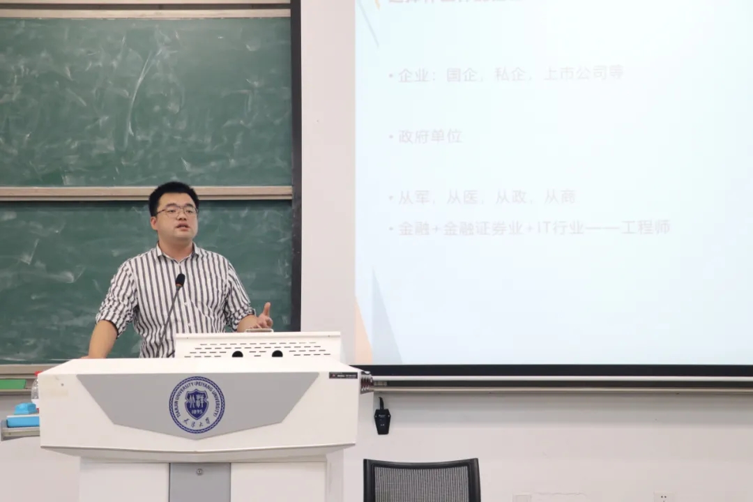2021年9月17日下午,在北洋园校区33楼114,天津大学数学学院召开2022届毕业生就业动员会。本次动员会旨在帮助毕业生明晰发展方向,熟悉求职流程,引导同学们关注重点就业领域,鼓励数院学子把自身前途命运同国家民族前途命运紧紧联系在一起,在未来的拼搏路上实现人生价值。党委学工部就业指导中心生涯教育科科长刘超,高顿教育任恒分别进行主题讲授,数学学院团委书记、学工办主任、研究生辅导员唐婧亚就学院毕业生去向进行分析讲解。