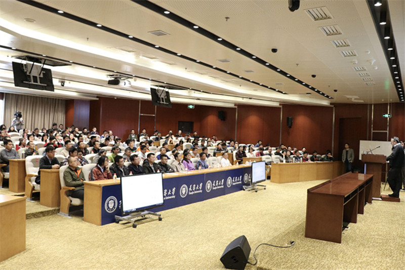On March 21, 2018, the conference hall of the administration building of Peiyangyuan Campus was crowded with students and enthusiastic applause. Zhang Weiping, an academician of the Chinese Academy of Science, Professor of Shiing-Shen Chern Institute of mathematics of Nankai University and Deputy-director of the Center for Applied Mathematics of Tianjin University, delivered an academic lecture entitled ‘From Triangles to Manifolds’ to the students and teachers of the School of Mathematics. It was also the second class of the mathematic lecture series given by the School of Mathematics at Peiyangyuan Campus. The lecture was presided over by Sun Xiaotao, Dean of the School of Mathematics.
