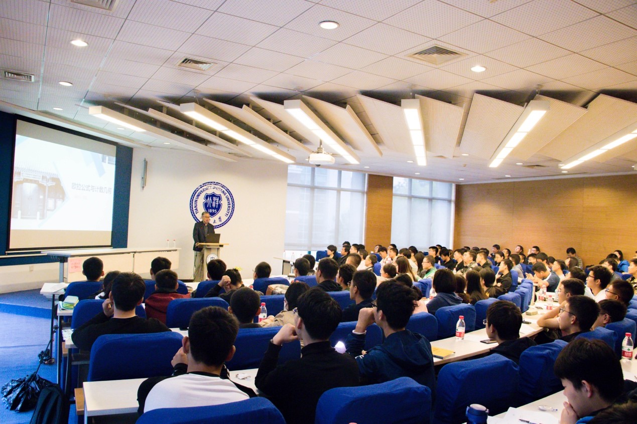 Professor Tian Gang started his lecture with a simple question “What is a regular polyhedron?”. There are only five kinds of regular polyhedrons. This is the famous result of the ancient Greek mathematician Euclid's "Geometry Original" around 300 BC. Then he introduced the outstanding mathematician Euler, who completed a large number of papers by mental arithmetic in the case of blindness, becoming the most prolific mathematician in history. The Euler formula is known as one of the most beautiful formulas and many constants, formulas and theorems named after Euler can be found in mathematics and many branches.