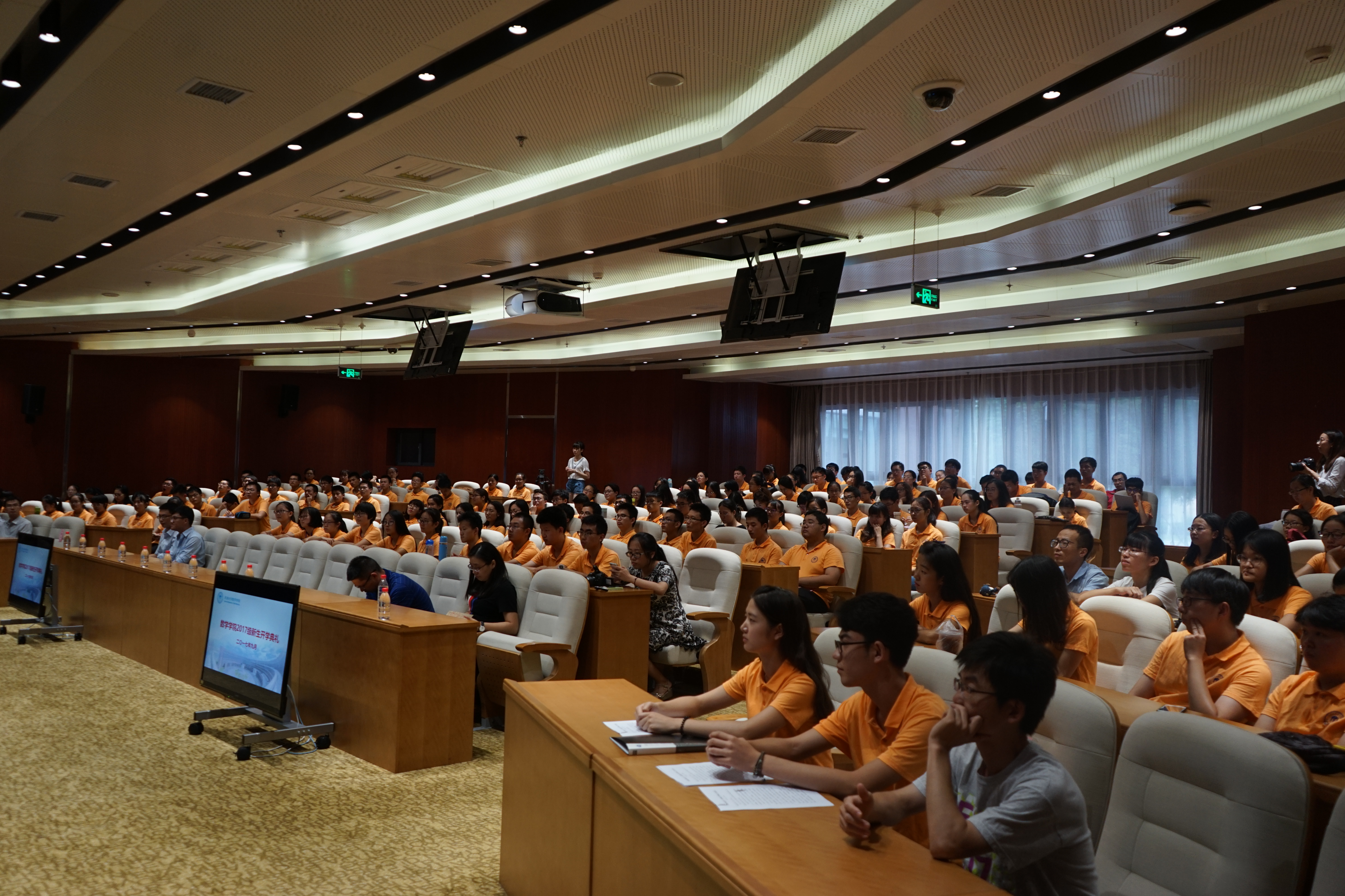 On September 13, 2017, the first opening ceremony for freshmen was successfully held at the conference hall of the administrative building of Peiyang Park campus after the founding of the School of Mathematics. The academician of Chinese Academy of Sciences and director of the Center for Applied Mathematics of Tianjin University, Chen Yongchuan, Dean Sun Xiaotao, Party Secretary Zhao Xin, Associate Dean Shi Guoliang, Associate Dean Liu Na, Vice Party Secretary Pei Jialiang, teacher delegates and all the freshmen of 2017 attended the opening ceremony. The ceremony was hosted by Pei Jialiang.