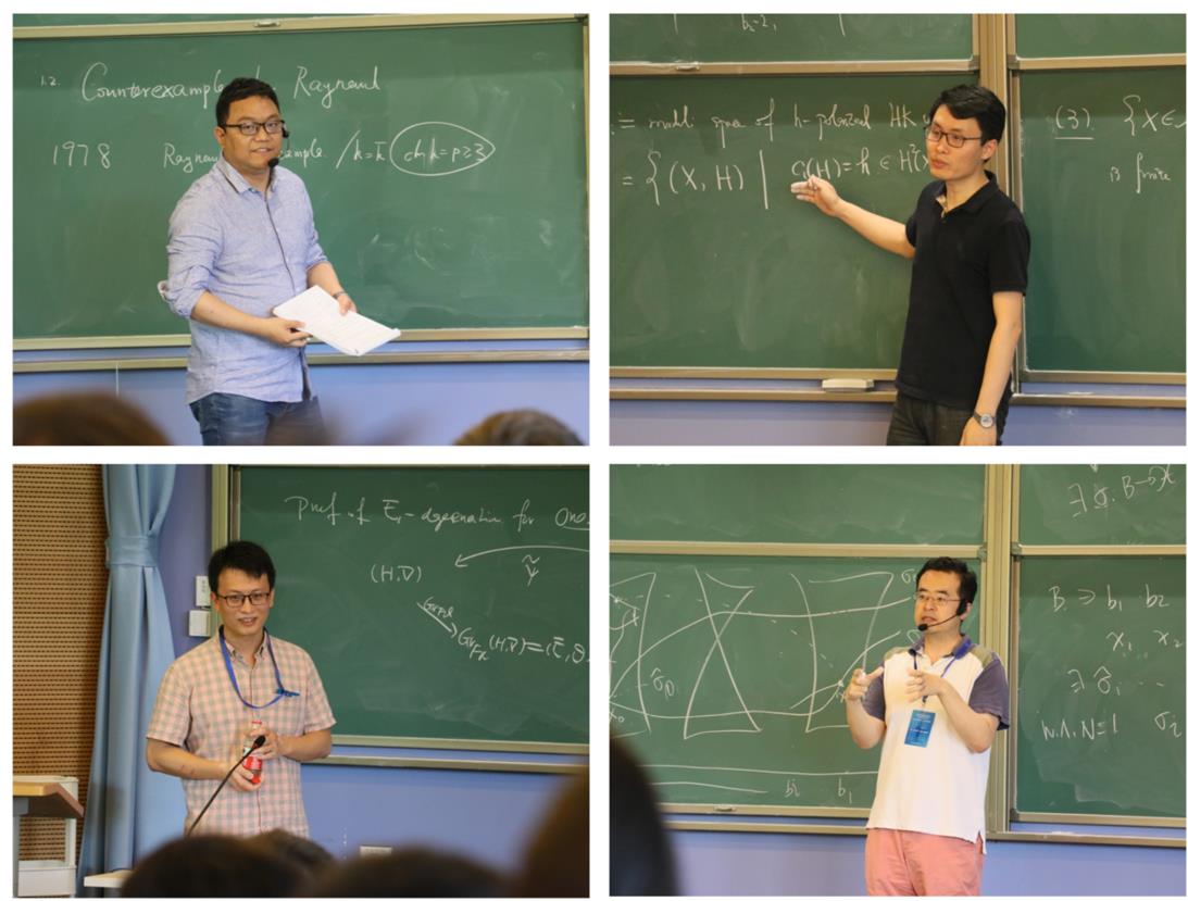 Four domestic reporters gave one-hour reports. Yi Gu from Soochow University demonstrated latest outcome on slope inequalities and Miyaoka-Yau type inequality in positive characteristics; Zhiyuan Li from Fudan University talked about the unpolarized Shafarevich type questions and its relation to Torelli theorem; Mao Sheng from University of Science and Technology of China analyzed decomposition theorem for intersection de Rham complexes and gave an algebraic proof of E1 degeneration and Zhiyu Tian from Peking University emphasized on new things on weak approximation and separable rational connectedness of smooth Fano hypersurfaces in positive characteristic.