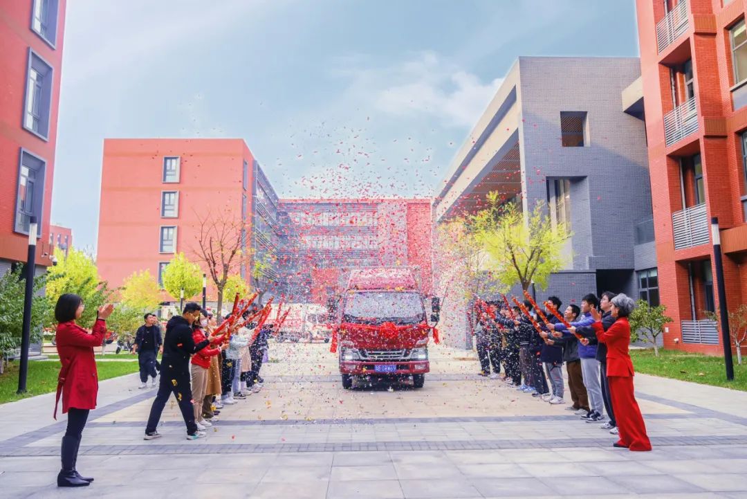 Accompanied by bursts of celebratory fireworks, the convoy of relocation vehicles move slowly towards the entrance of Building 58, symbolizing the steadfast stride of the school into its new chapter.