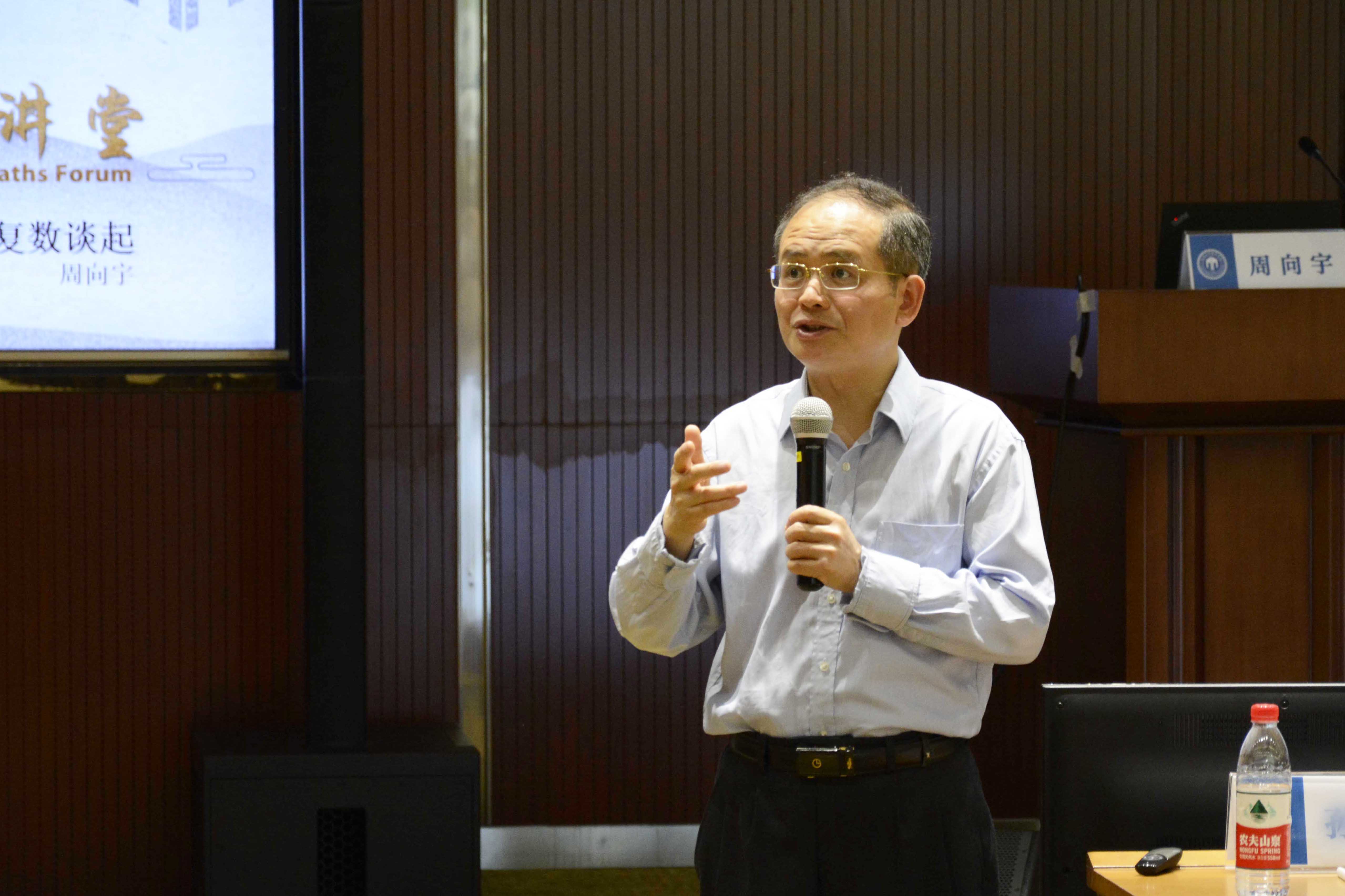 The lecture began with the origins of complex numbers. Professor Zhou used the radical solution of the cubic equation as a clue, and described the motivation to study complex numbers and the history of their birth. As early as in the Tang and Song Dynasties of China, the numerical solution of higher-degree equations were obtained by Wang Xiaotong's “Jigu Suanjing” (the most ancient work solving the cubic equation in ancient China), Pascal's Triangle, and Qin Jiushao’s “Mathematical Treatise in Nine Sections”. Over the following hundreds of years, the names of Western mathematicians dominated the history of complex-number development. "To obtain a real root, is to detour through imaginary numbers", Cardano found complex numbers to solve perplexing mathematical problems; Bombelli introduced complex numbers to solve previous problems; Wallis used geometric methods to interpret imaginary numbers; Girard, Euler, d'Alembert, Gauss, etc. proposed and proved the basic theorems of algebra. These mathematical pioneers made imaginary numbers a member of a large family of the numerical system and deepened complex number theory.